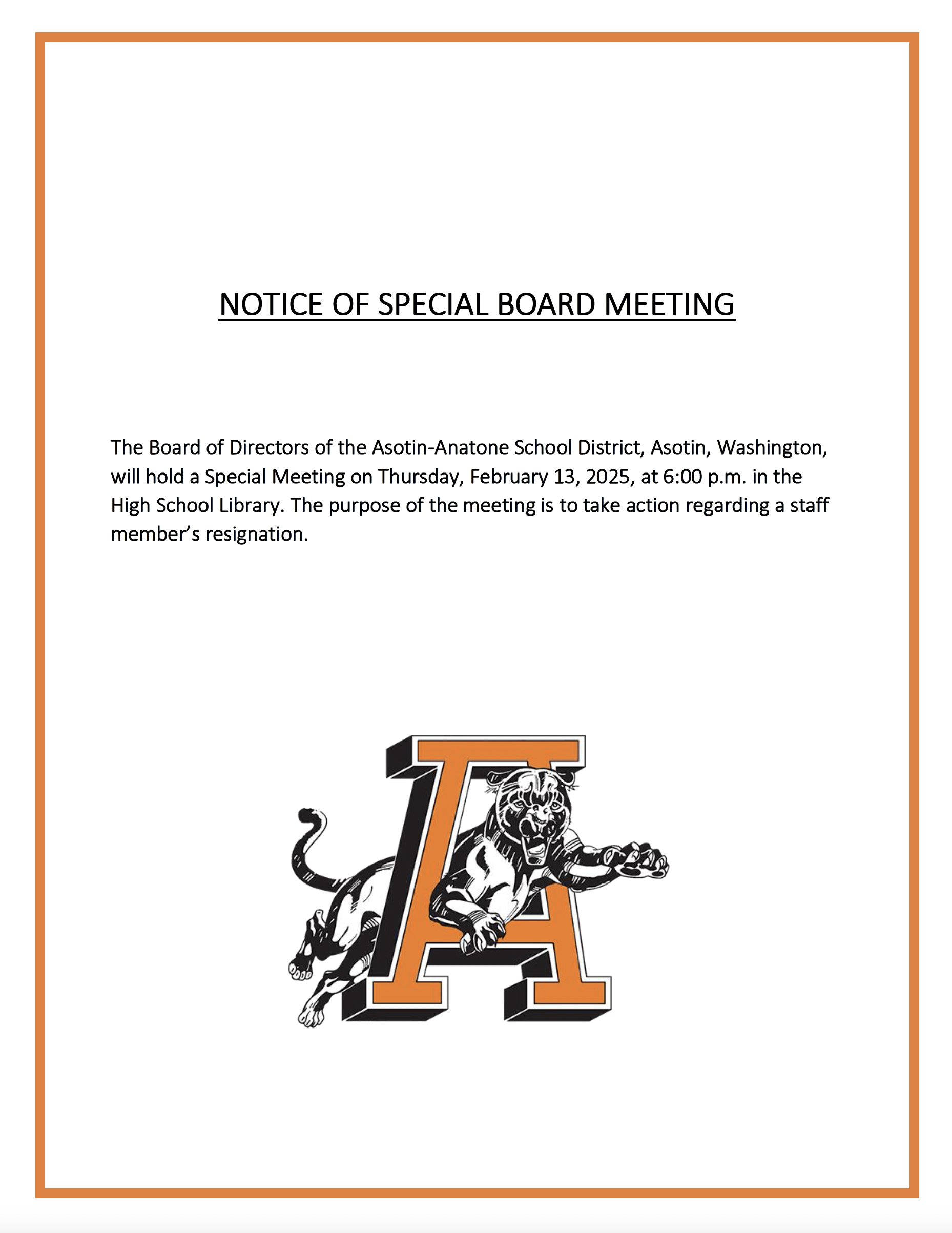 Special Board Meeting Thursday, February 13th, 2025 at 6PM
